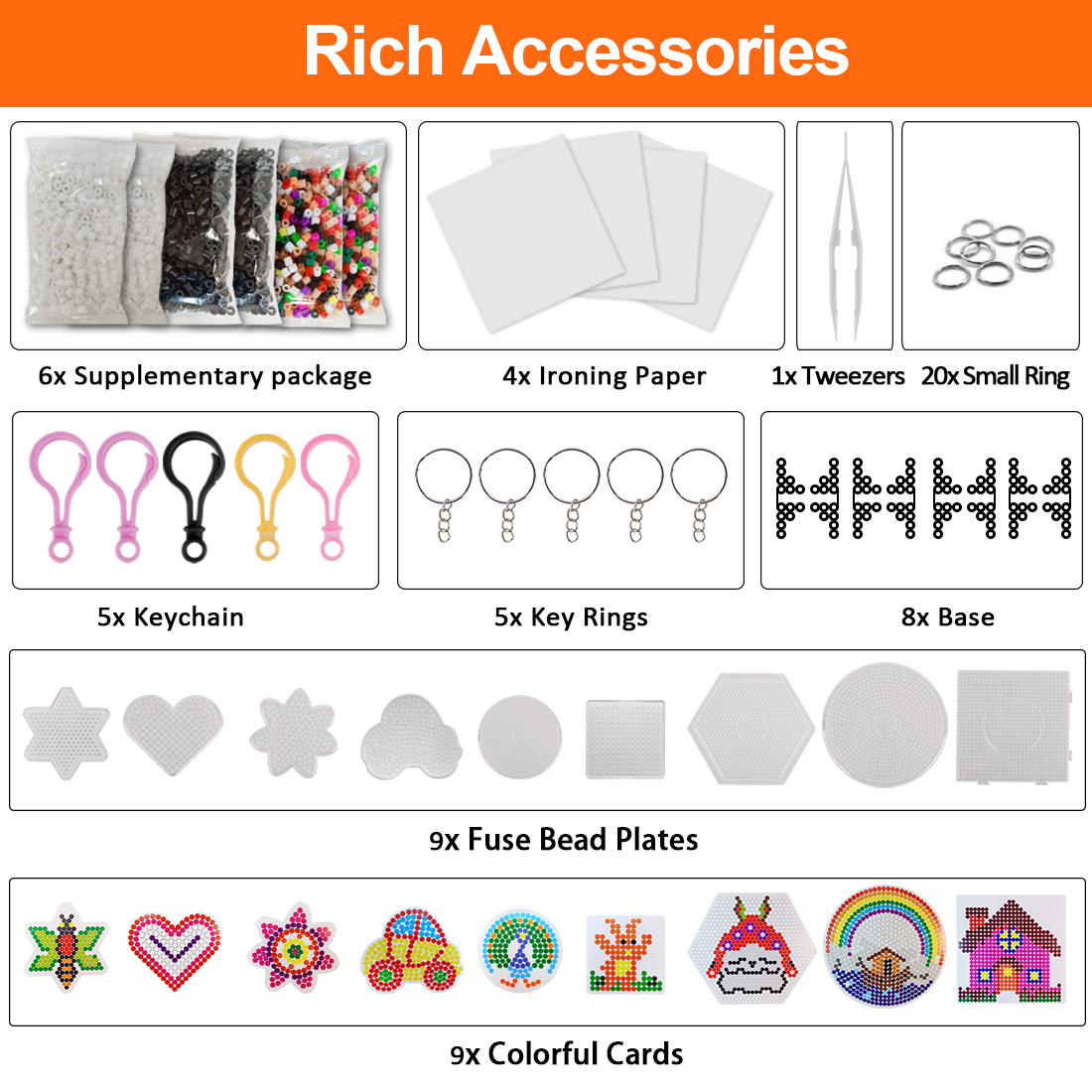 - Product description: 16,200 pcs Fuse Beads, Genround 48 Colors Fuse Beads kit for Kids Including Fuse Beads Supplement, Pegboards, Patterns Cards, Ironing Paper, Base, Key Ring, Keychain, Iron Rings, Tweezer