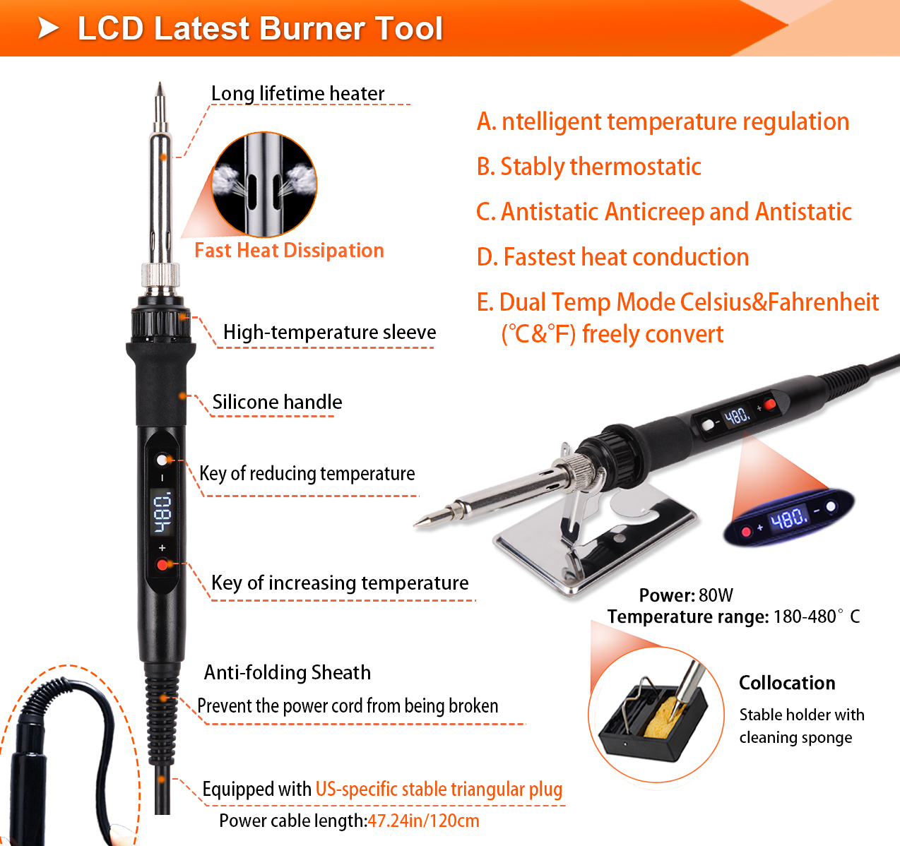 - ✅【The Latest LCD Display & Double Heat Dissipation】- The latest upgrade burner pen(80 watts) with thermostatic digital-controlled LCD screen gives you Visual Control although in night .The key point is multiple high temperature cooling Vents and the heat cover dissipation make your touch handle with cool environment and the handle material is also Heat resistant and thick rubber non-slip without any hot or sweaty feeling .